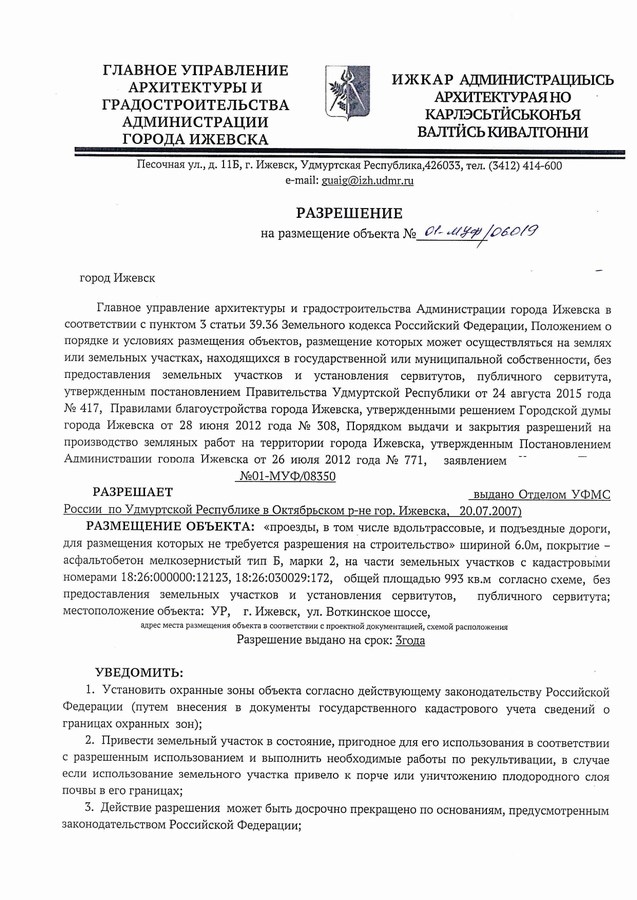 Для нашего заказчика мы выполнили работы по получению разрешения на отвод земельного участка из муниципальной собственности от Администрации города Ижевска под благоустройство и устройство подъездной дороги к земельному участку по Воткинскому шоссе в Устиновском районе города Ижевска, прилегающего к объекту Заказчика. Специалисты OOO «Архитектурная мастерская Шайхутдинова и Ко» подготовили пакет документов, в том числе графические материалы (эскизный проект), схему земельного участка с указанием границ запрашиваемого участка. Комиссия при Администрации города Ижевска рассмотрела предоставленный пакет документов и приняла положительное решение. Нашему заказчику предоставили земельный участок из муниципальной собственности.