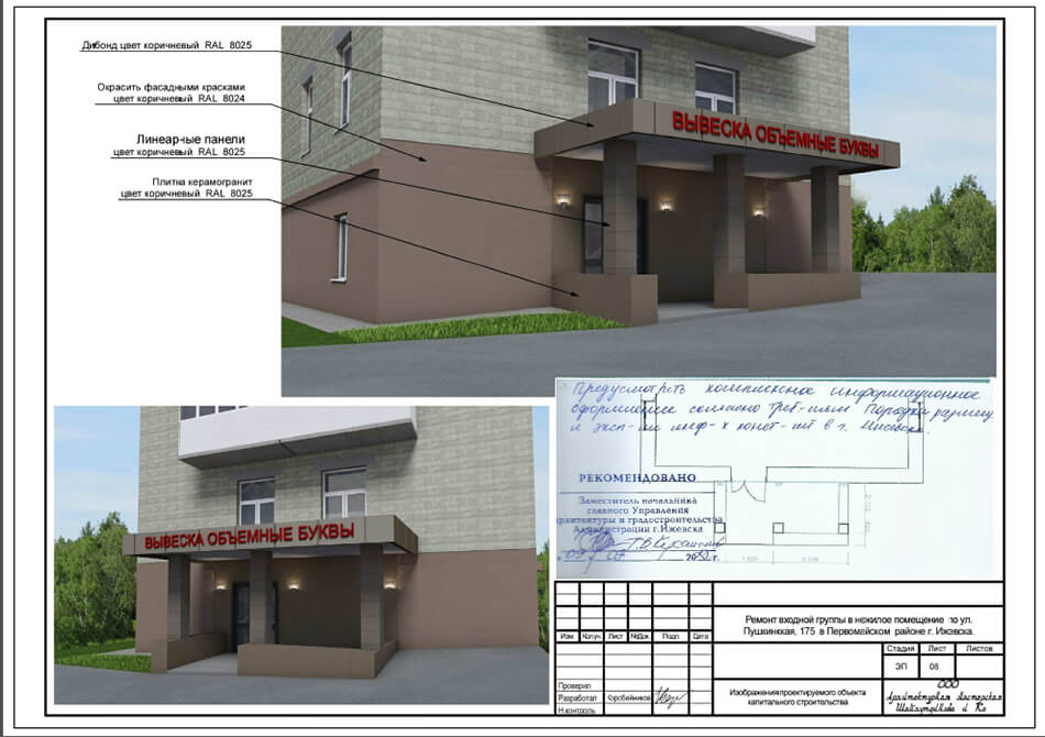 Нами было разработаны и прошли согласование в Администрации города Ижевска очередные эскизные проекты: «Офисный центр на ул. Пушкинская, 175» и «Магазин смешанных товаров по ул. 9 Января, 165».