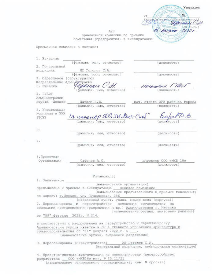 Вот и еще один объект ввели в эксплуатацию после перевода жилого помещения в нежилое в нежилое. Мы провели полный комплекс работ, связанный с переводом жилой квартиры под нежилое помещение, с дальнейшим использованием под магазин непродовольственных товаров. По этому объекту мы разработали рабочую проектную документацию и разработали эскизный проект. Так же специалисты ООО «Архитектурная мастерская Шайхутдинова и Ко» выполнили необходимые согласования, получено было разрешение на строительство входной группы в нежилое помещение, собрали комплект документов для получения постановления Администрации города Ижевска о переводе квартиры, принадлежащего нашему заказчику, под нежилое помещение. Подготовили исполнительную документацию после завершения строительных работ. Выполнили процедуру ввода в эксплуатацию завершенного объекта. Полностью сопроводив объект от начала работ и до получения правоустанавливающего документа на нежилое помещение.