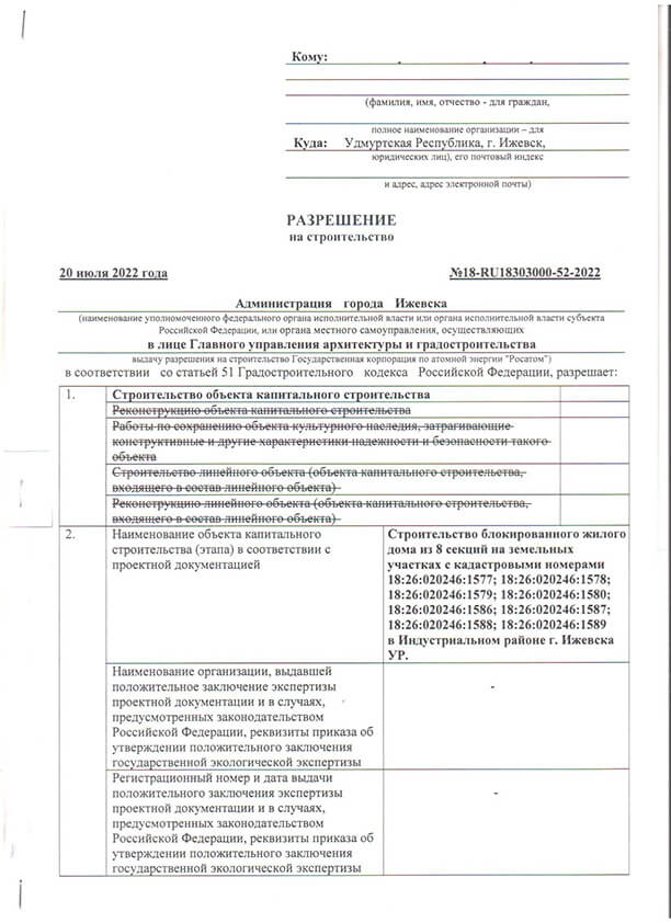 Получено разрешение на строительство блокированного жилого дома состоящего из 8-ми секций в Индустриальном районе города Ижевска!