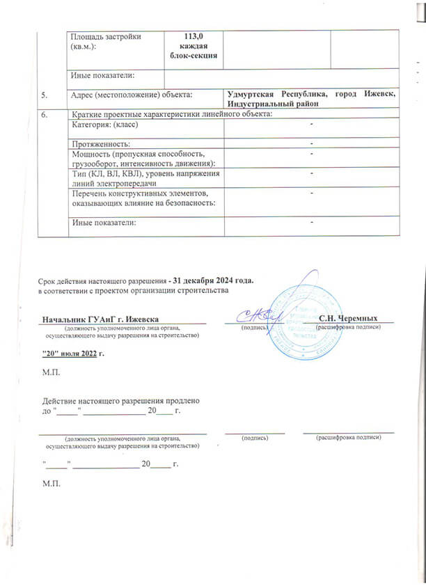 На основании проектной и сопроводительной документации Администрация города в лице Главного управления архитектуры и градостроительства города Ижевска выдало разрешение на строительство в городе Ижевске. Заказчик поблагодарил за проведенную работу.