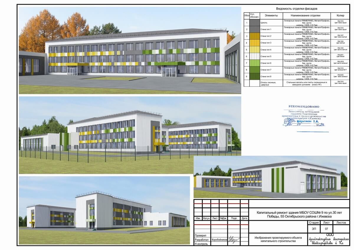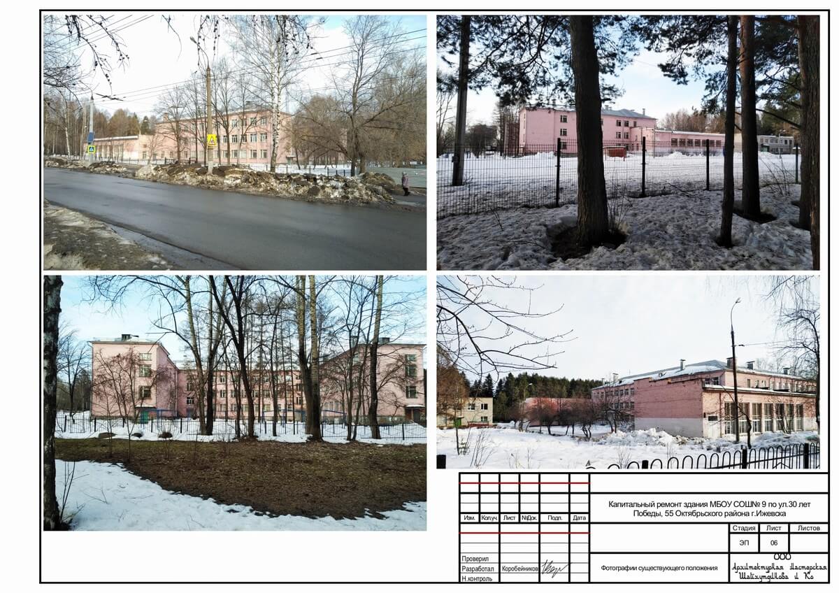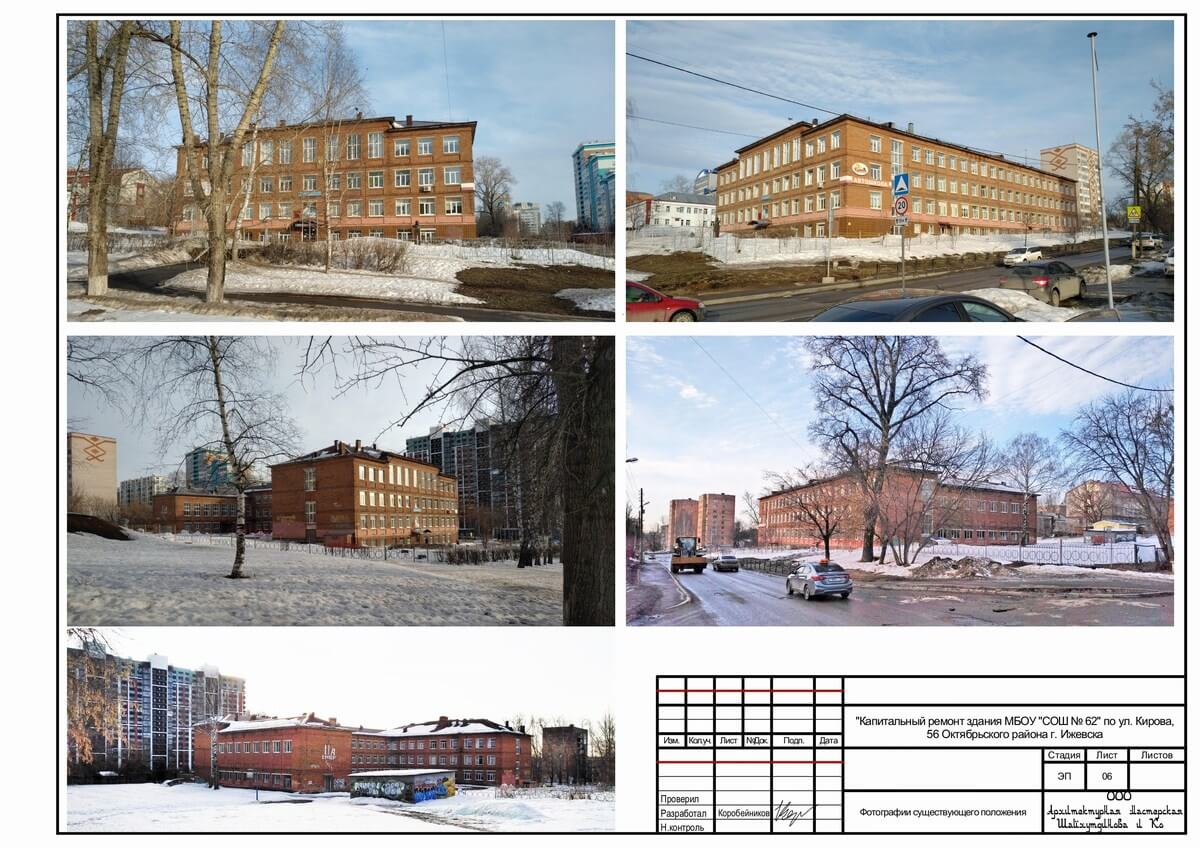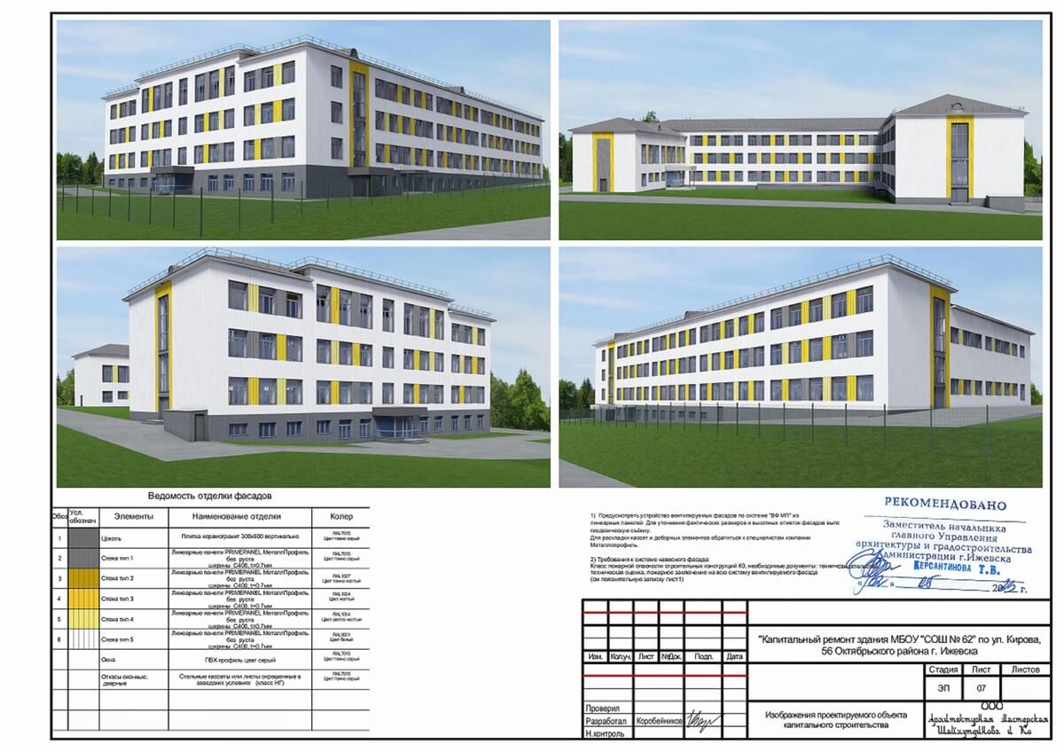 Все больше и больше в нашем городе муниципалитет и государство вкладывает деньги в образование будущего поколения в наших детей. В новых районах города строятся и детские сады и школы. В старых районах города, там где уже сложившаяся застройка тоже есть учебные заведения. И вот для приведения их к современным требованиям по безопасности и внешнему облику мы разработали по заказу города эскизные проекты на капитальный ремонт двух ижевских школ, расположенных в городке Металлургов. Это средние учебные заведения города Ижевска школа №9, расположенная по улице 30 лет Победы, 55 и школа №62 по улице Кирова, 56.