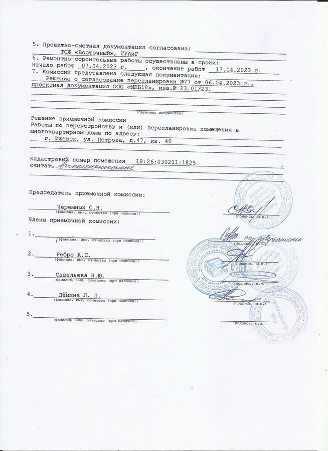 4. Получили разрешение на перепланировку от Администрации города Ижевск в лице ГУАиГ;