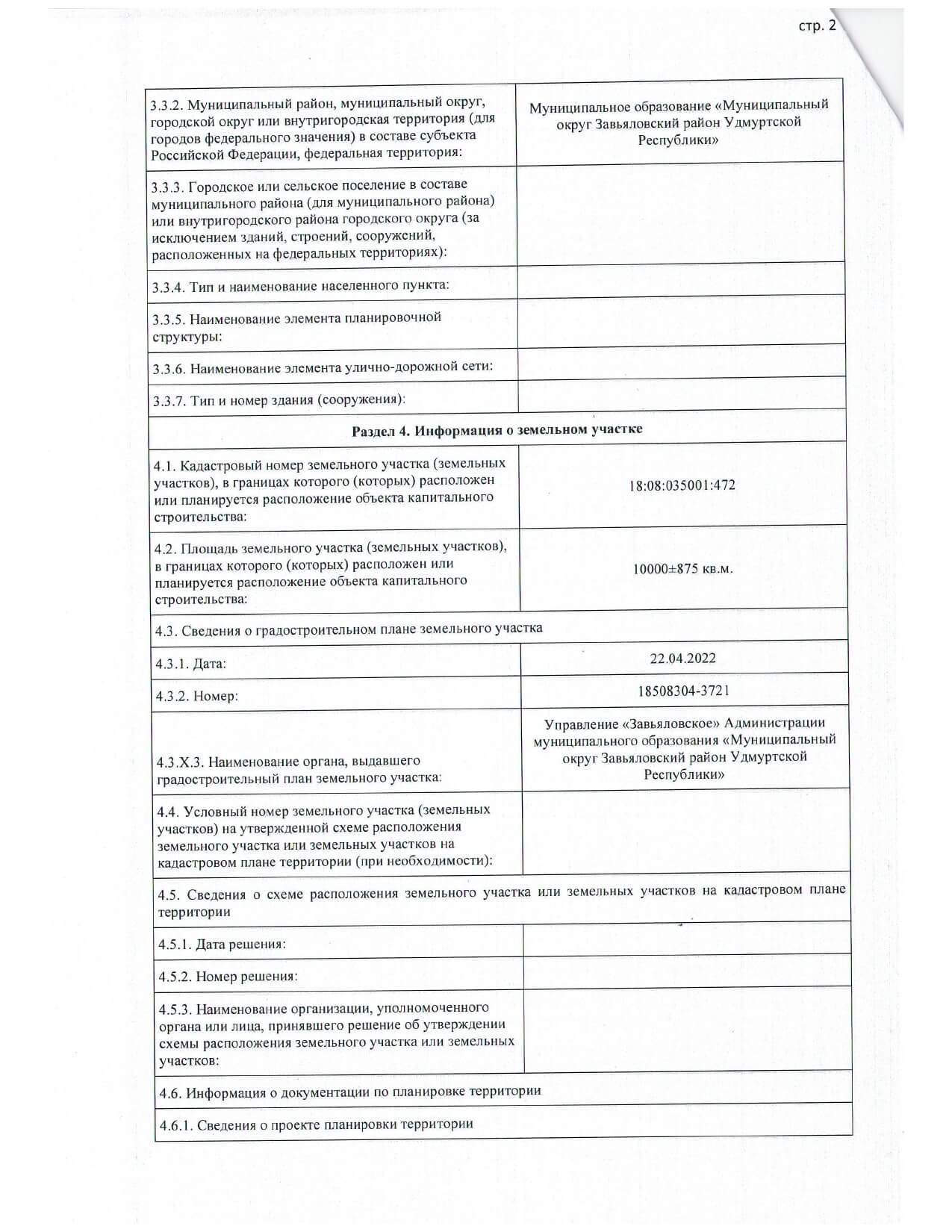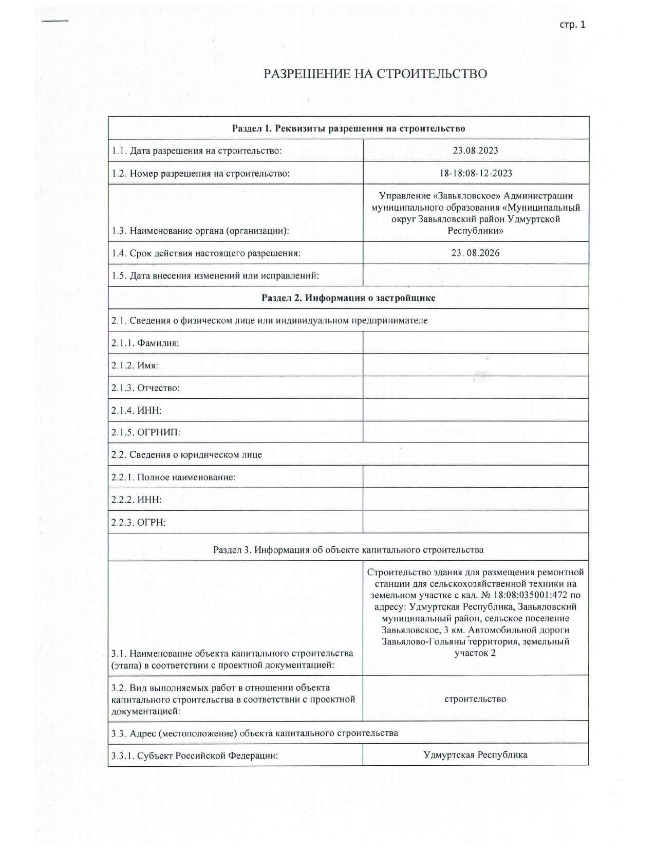 Получено разрешение на строительство здания ремонтной станции в сельском поселении Завьялово УР