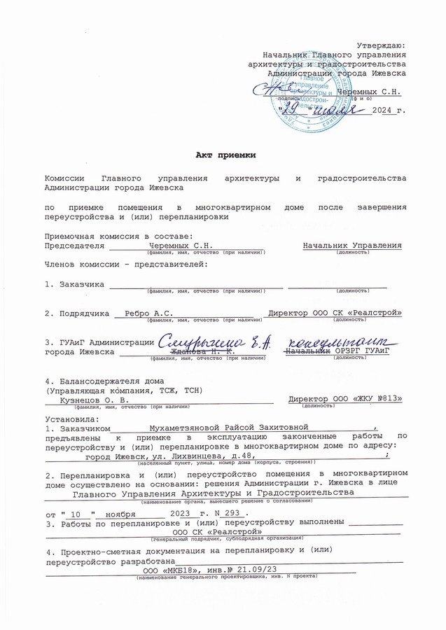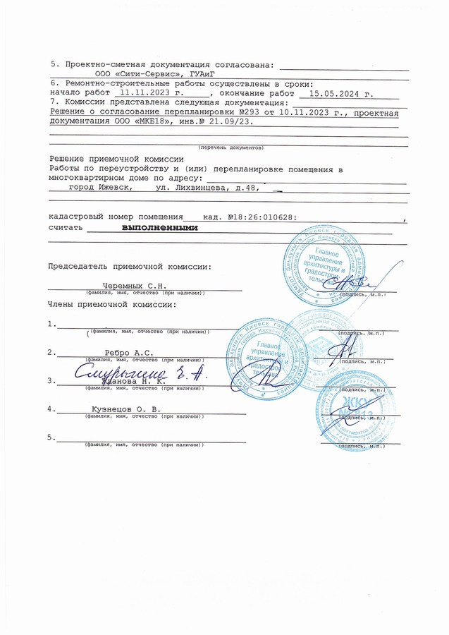 4. Получили разрешение на перепланировку от Администрации города Ижевск в лице ГУАиГ;