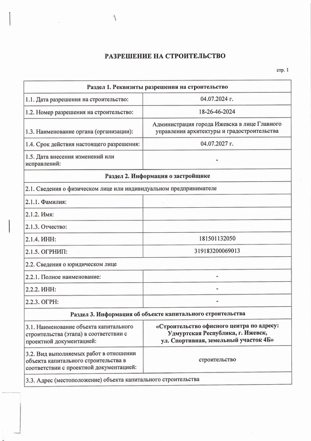 Заказчик обратился к нам за помощью, в получение разрешения на строительство офисного здания на территории муниципального образования город Ижевск. Специалисты ООО «Архитектурная мастерская Шайхутдинова и Ко» разработали проектную документацию, собрали исходные данные для проектирования. Получили необходимые технические условия на подключение к сетям водоснабжения и водоотведения и электроснабжения необходимых для выполнения проектных работ. На втором этапе разработали эскизный проект и рабочую проектную документацию в объеме, согласно ст. 51 Градостроительного кодекса РФ и непосредственно получили разрешение на строительство. Работа была выполнена быстро и с надлежащим качеством! Заказчик выразил признание за проделанную работу.