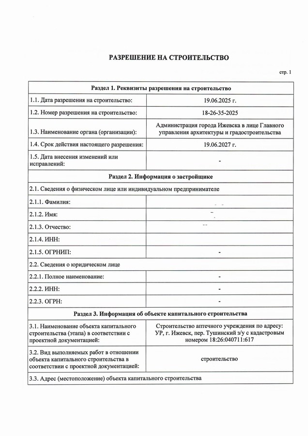 Получено разрешение на строительство аптеки в Ленинском районе города Ижевск!