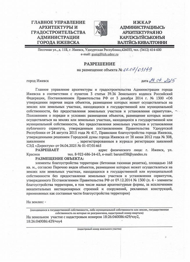 Для нашего заказчика мы выполнили работы по получению разрешения на отвод земельного участка от Администрации города Ижевска на благоустройство земельного участка и устройство подъездной дороги к земельному участку по ул. Ижевская, 17 в Ленинском районе города Ижевска, прилегающего к объекту Заказчика. Специалисты OOO «Архитектурная мастерская Шайхутдинова и Ко» подготовили пакет документов, в том числе графические материалы (эскизный проект), схему земельного участка с указанием границ запрашиваемого участка. Комиссия при Администрации города Ижевска рассмотрела предоставленный пакет документов и приняла положительное решение. Нашему заказчику предоставили земельный участок из муниципальной собственности.
