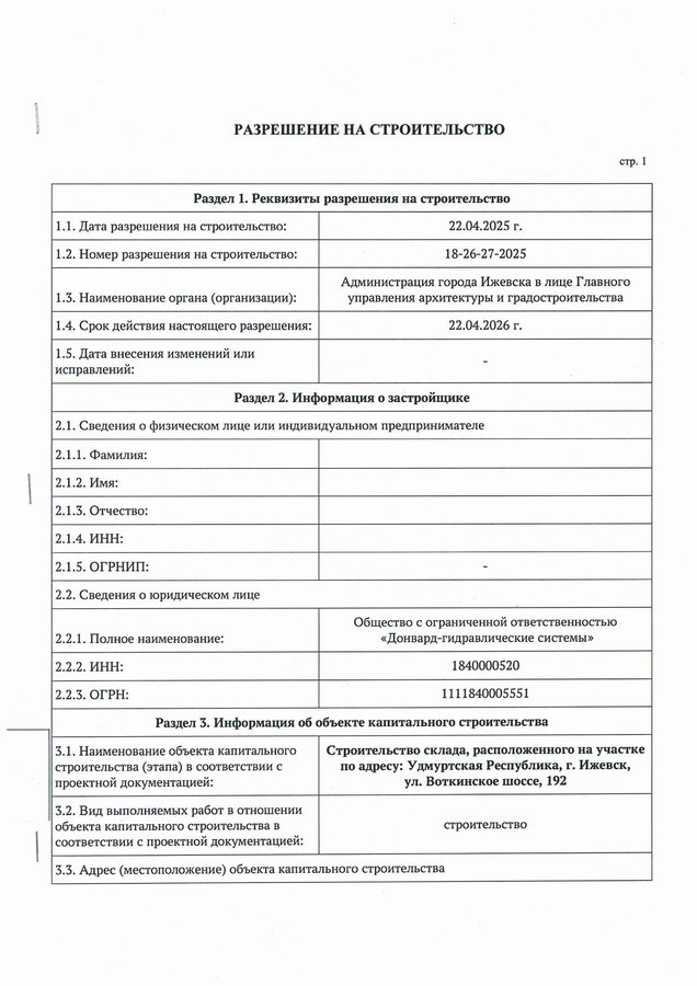 Получено разрешение на строительство склада на Воткинском шоссе в городе Ижевске!