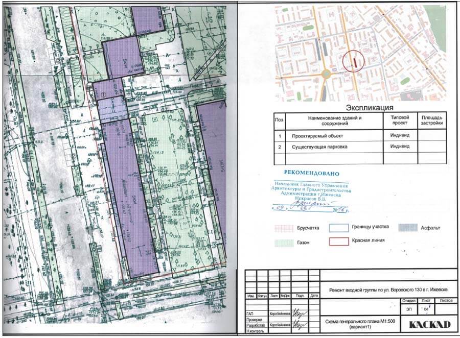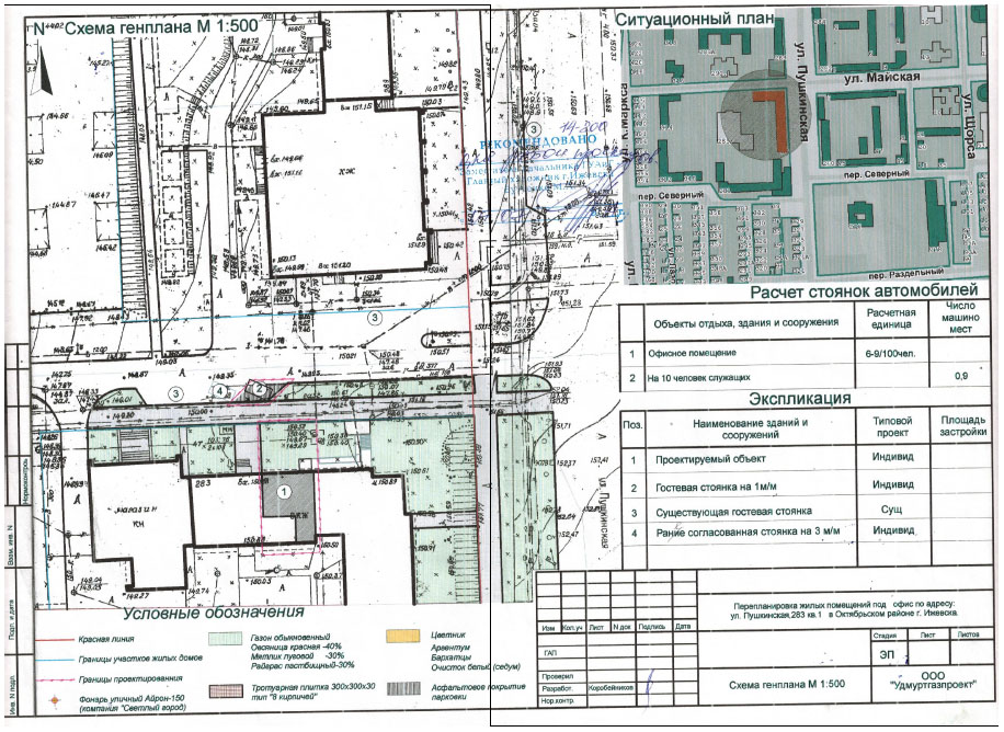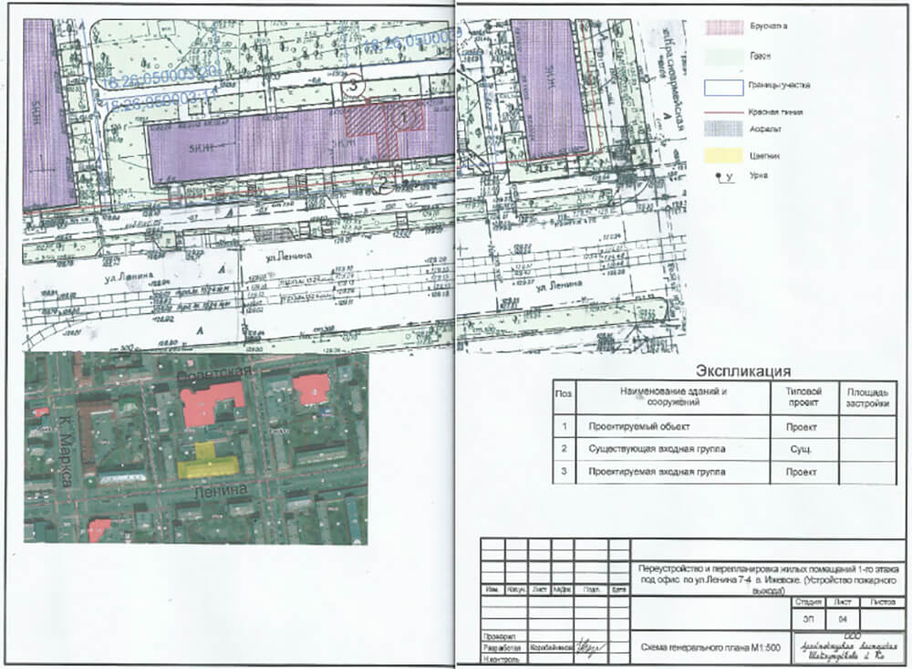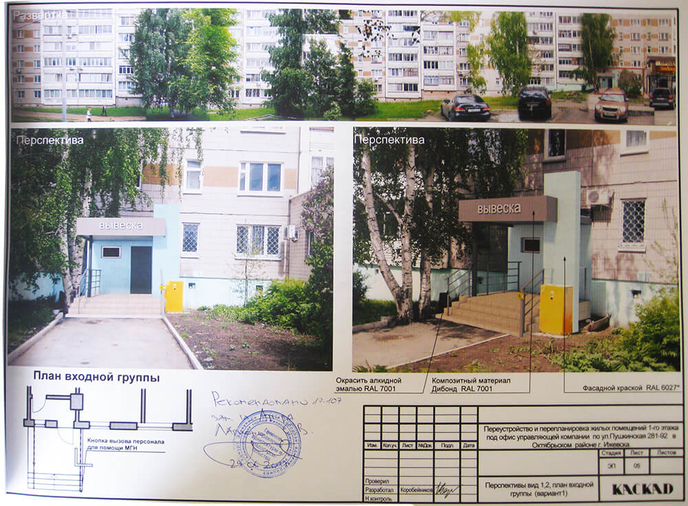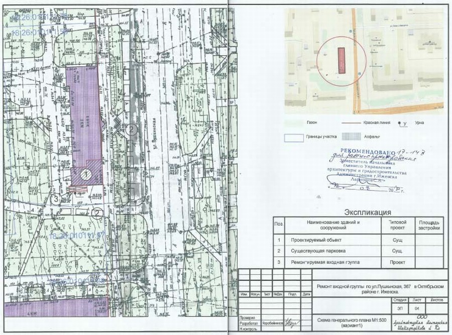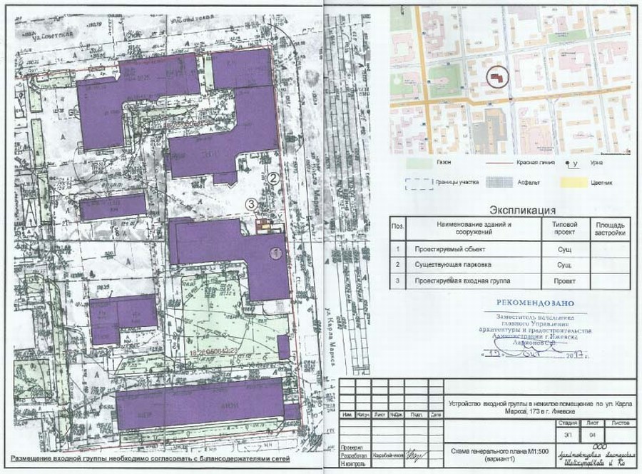 | Помещение под офис ул. Пушкинская 281-92, эскизный проект, генплан, план входной группы |