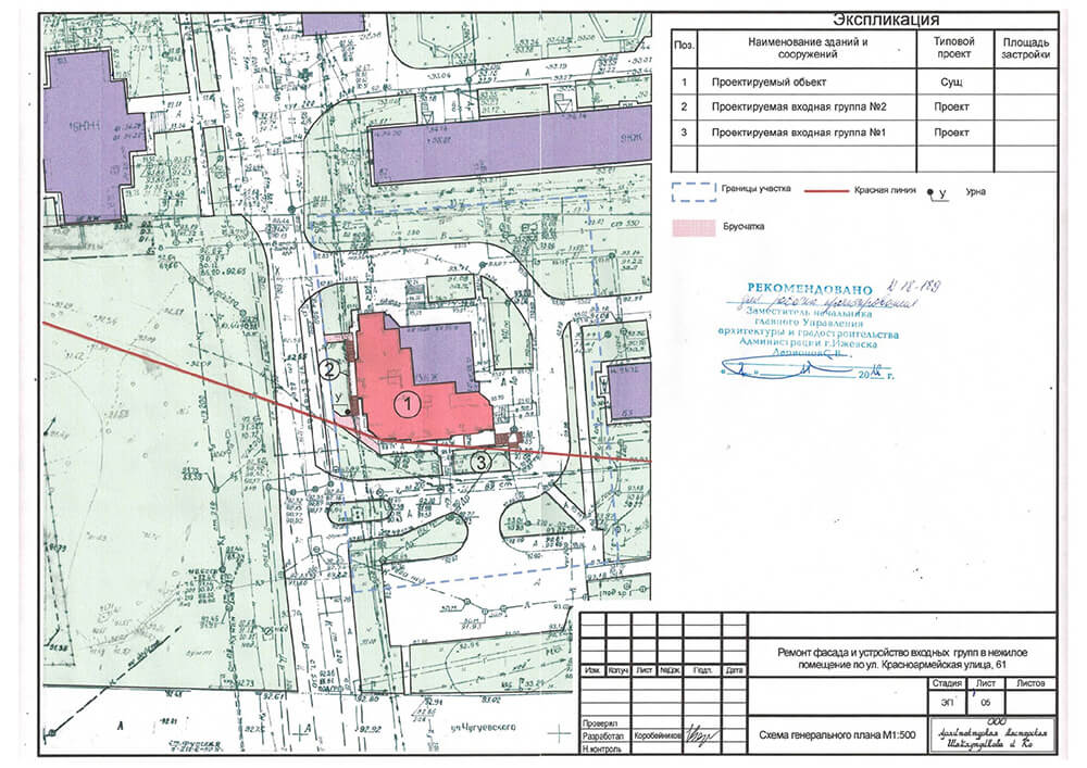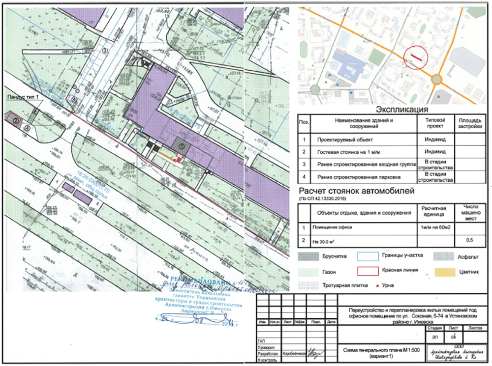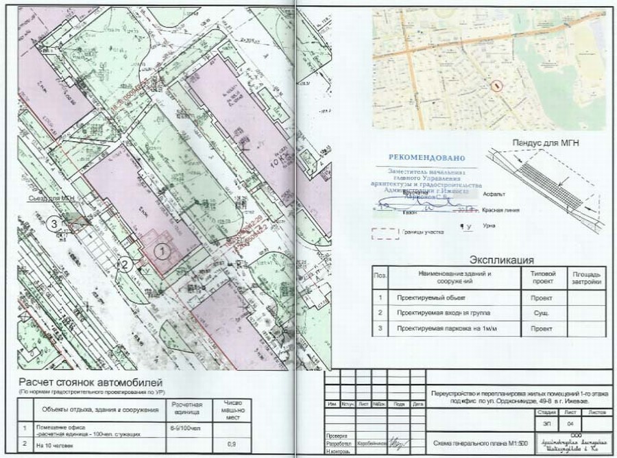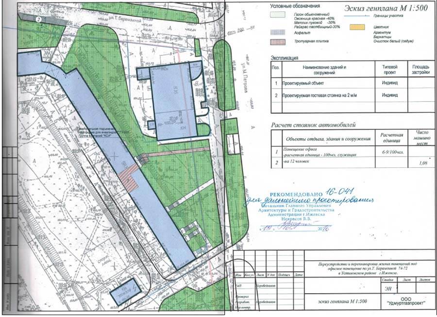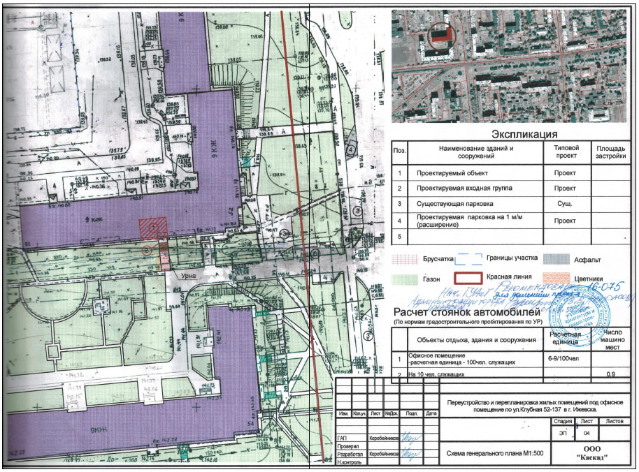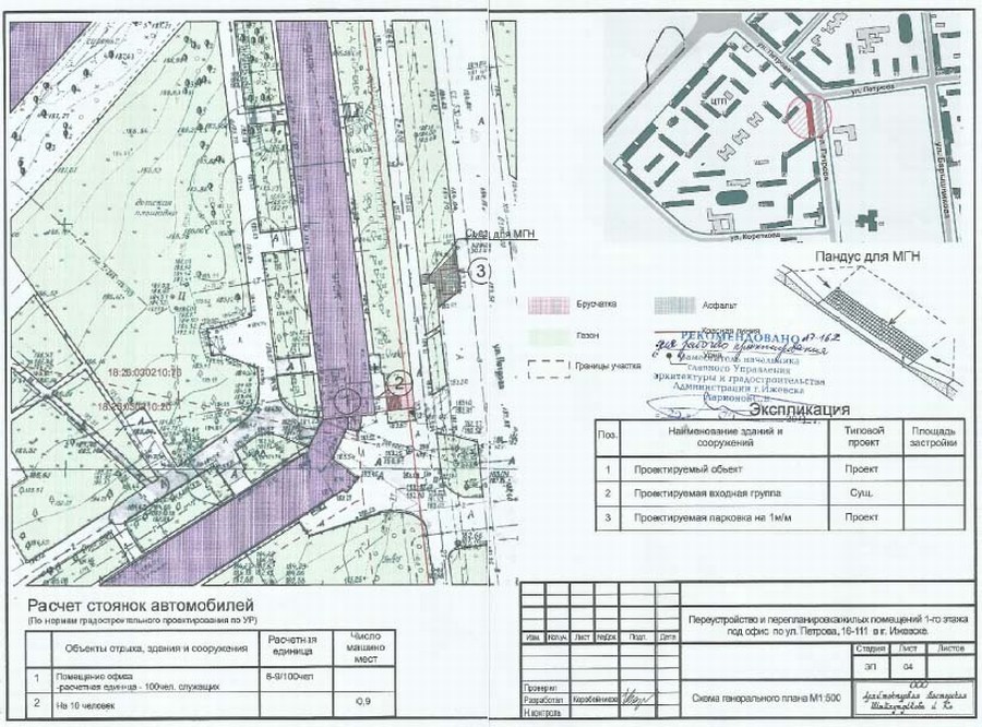 | Помещение под офис ул. Пушкинская 281-92, эскизный проект, генплан, план входной группы |