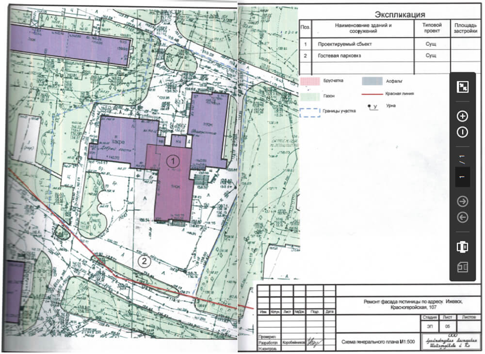 | Генплан ул. Красногеройская, 107 Отель Дерябинъ |
