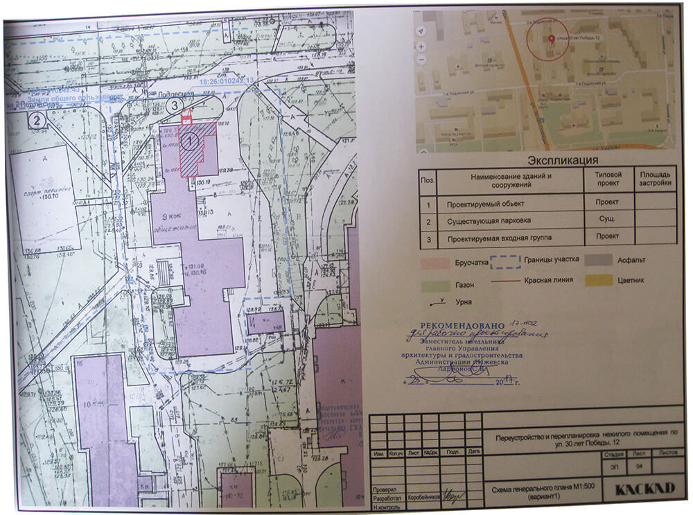| Нежилое помещение ул. 30 лет Победы, 12, эскизный проект, генплан, план входной группы |